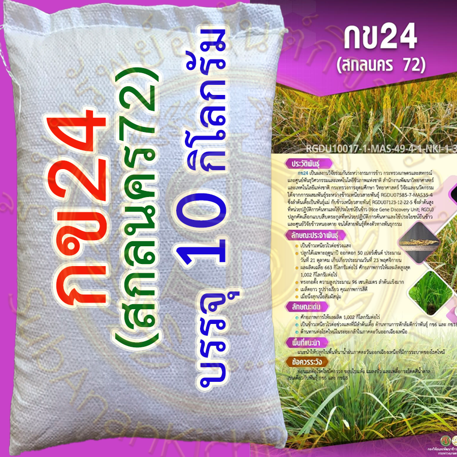 เมล็ดพันธุ์ข้าว กข24 (สกลนคร72) แบ่ง 10 กิโลกรัม